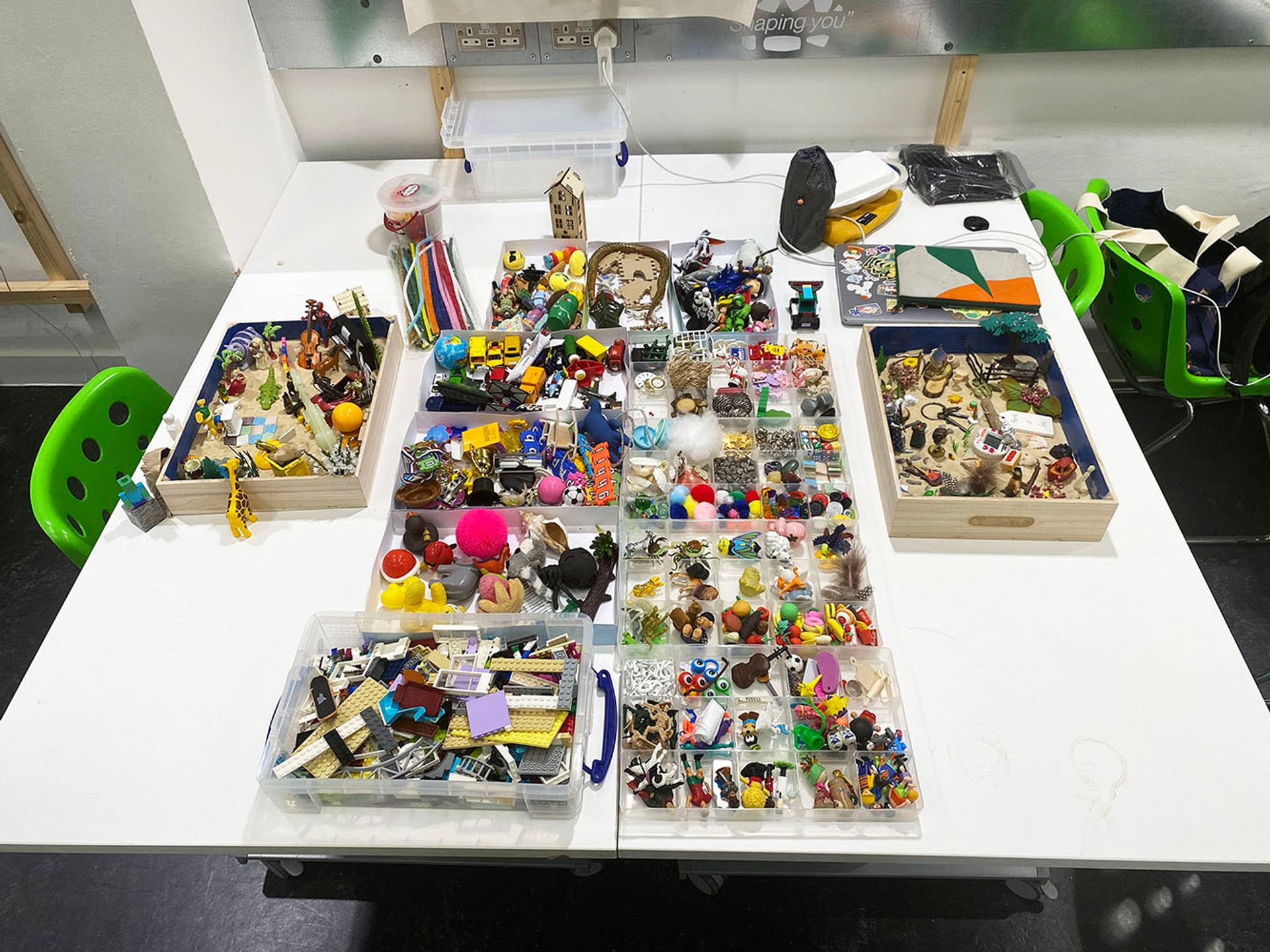 At the start of the workshop, participants are advised to touch and feel the sand first. Then they are free to go through the whole toy collection and select anything that grabs their interest. Most of the toys from the collection are second-hand and acquired from charity shops and flea markets. The organiser sits beside them during the building process and engages in casual conversations about their choices or arrangements. All of the outcomes are later photographed and 3D scanned to keep records in the archive.